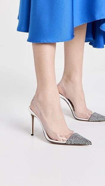 - Calfskin suede toecap with crystal embellishments
