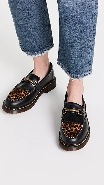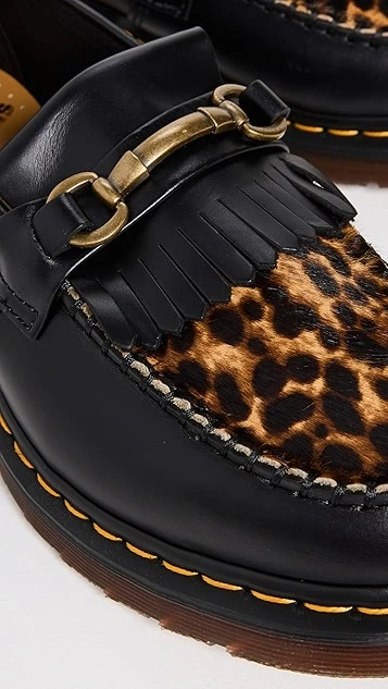 These Dr. Martens Adrian loafers are truly distinct and unique. This pair features a panel in leopard-printed haircalf at the vamp, plus classic design elements like a matte bit and an air-cushioned sole. They’ll look equally at home when worn with jeans and tidy trousers.