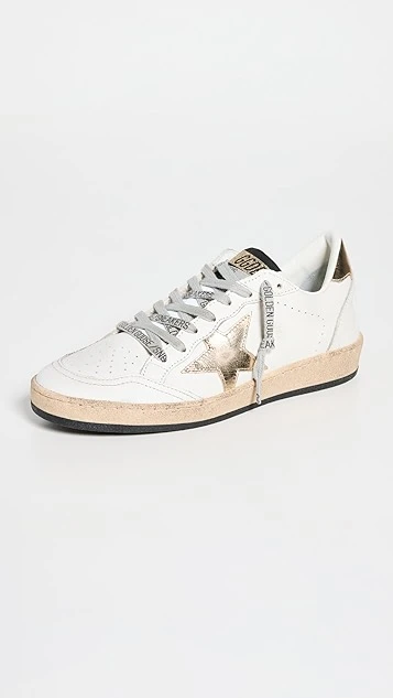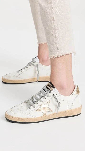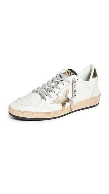 Always a favorite for ultra-cool, off-duty looks. These Golden Goose sneakers update the label’s signature Ball Star silhouette with a hint of metallic flash, while staying true to their usual distressed style with artful scuffing.