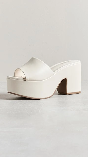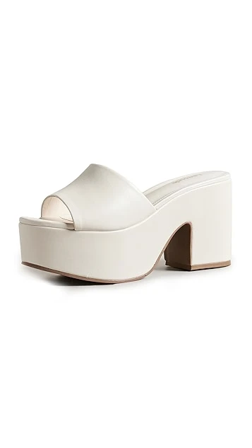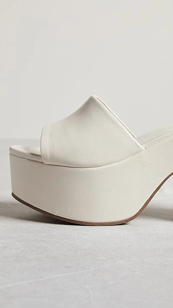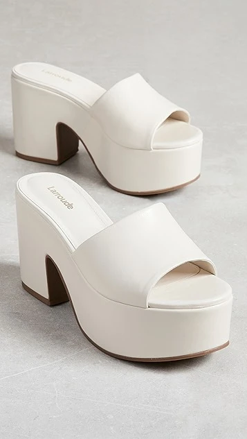 A substantial platform distinguishes these Larroude slide sandals, which are crafted entirely from monochrome off-white leather.