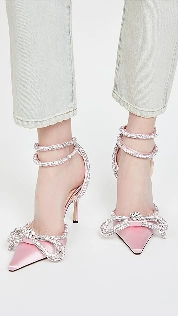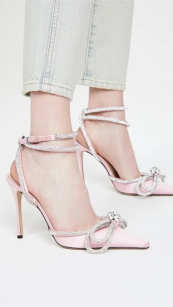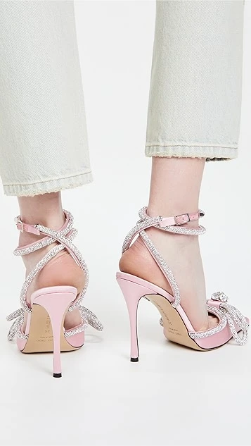 Pink satin and brilliant crystals combine to add a touch of eye-catching glamour to these strappy MACH & MACH sandals.
