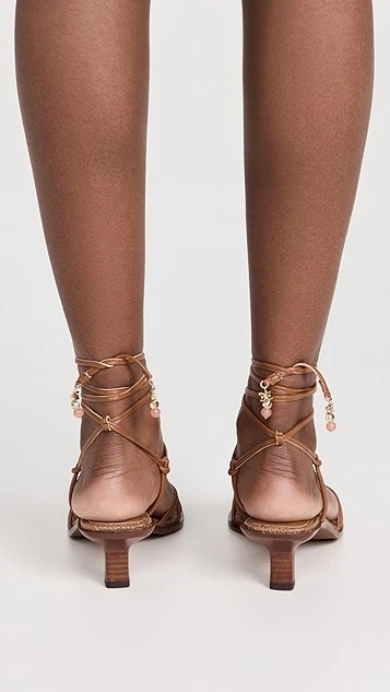 - Ankle-wrap silhouette with tie closure