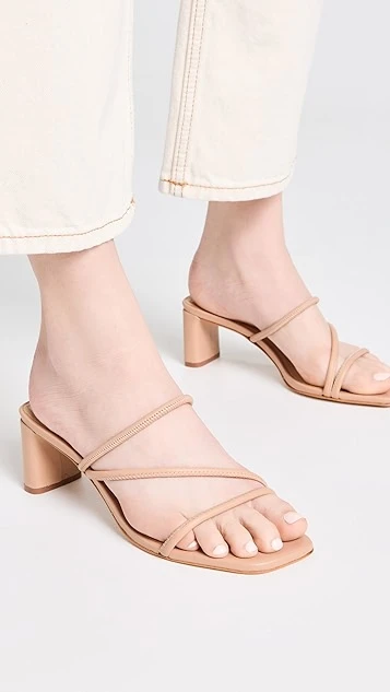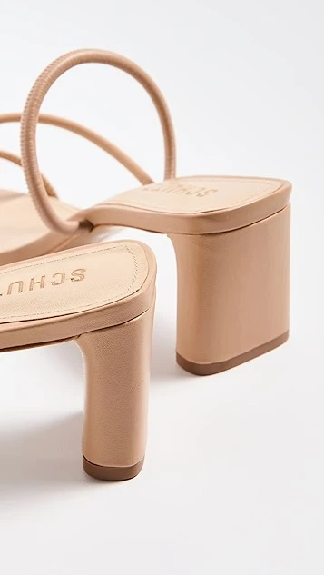 Add a touch of understatement to your dressed-up look with these Schutz sandals. This pair features a strappy, minimalist design, a mid-height heel, and neutrally colored leather.