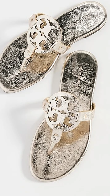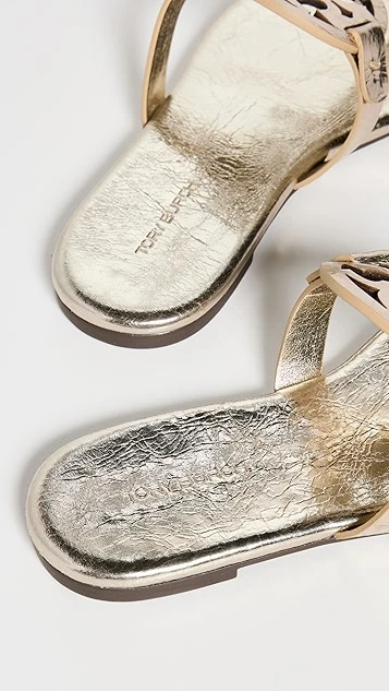 A fresh iteration of a cult-favorite slide. These Tory Burch Miller sandals keep the timeless style and signature laser-cut logo and add extra comfort with cushioning at the footbed and a flexible rubber sole.