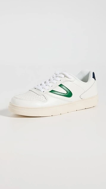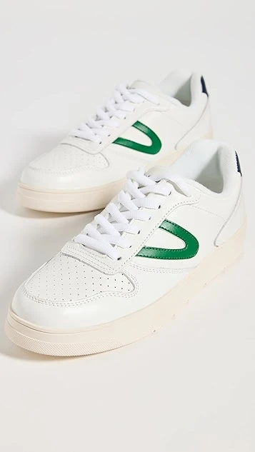 Sleek and simple, these Tretorn low top sneakers feature a white leather upper, sporty perforation at the toe, and subtle touches of contrast trim.