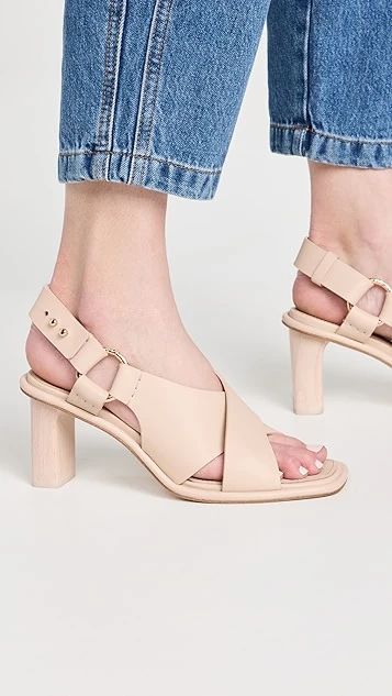- Sculpted wood heel
