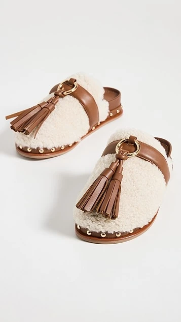 - Notched vamp with strap and tassel accent